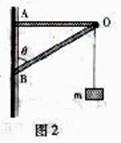 7.如图2所示,质量为m的物体悬挂在轻质的支架上,斜梁OB与竖直方向的夹角为θ。设水平横梁OA和斜梁OB作用于O点的弹力分别为F1和F2。以下结果正确的是