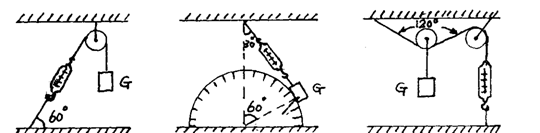 18.图中弹簧秤、绳和滑轮的质量均忽略不计,物体质量都是m,在①②③三种情况下,弹簧秤的读数分别是F1、F2、F3,则