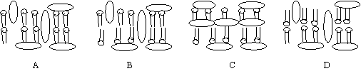磷脂双分子层是构成细胞膜的基本支架,蛋白质分子镶嵌于磷脂双分子层中或贯穿于磷脂双分子层。下面能正确反映磷脂分子和蛋白质分子构成细胞膜的正确图解是