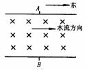 (2) (3分)如图所示为北半球一条自西向东的河流,河两岸沿南北方向的A、B两点相距为D.若测出河水流速为v,A、B两点的电势差为U,即能测出此地的磁感应强度的垂直分量B⊥.= .