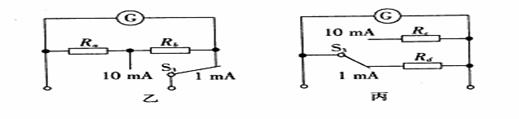 (b)将⑥改装成双量程的电流表。现有两种备选电路,如图乙、丙所示。