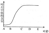 5.菠菜是一种含铁较高的一年生食用蔬菜,对预防缺铁性贫血有一定效果。下图表示菠菜叶龄(从幼叶到老叶)与叶片含铁量的关系。则以下叙述正确的是 ( )![]()