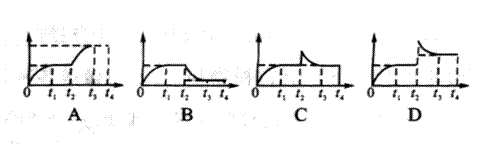 2NH3在t1时刻达到平衡;t2时刻再从A口快速充入一定量NH3,封闭A;t3时刻重新达平衡至t4。在0→t4时间内混合气中NH3的体积分数(纵坐标)随时间(横坐标)变化的曲线正确的是( )![]()