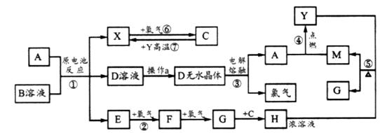 28.(15分)已知A为常见金属,X、Y为常见非金属,X、E、F、G、M常温下为气体,C为液体,B是一种盐,受热极易分解,遇冷后又化合并产生白烟,且B在农业中常用作肥料。现用A与石墨作电极,B的浓溶液作电解质,构成原电池。有关物质之间的转化关系如下图:(注意:其中有些反应的条件及部分生成物被略去)