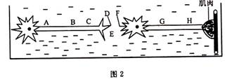 2.取未受操作影响的两相连的神经元,浸泡在任氏液(可保持神经细胞活性)中,其中,一个神经元是与肌肉纤维相连接的运动神经元。装置如图2所示,下列各选项中分析正确的是