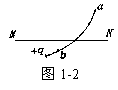 如图1-2所示,MN是由负点电荷产生的电场中的一条电场线.一个带正电的粒子+q飞入电场后,在电场力的作用下沿一条曲线运动,先后通过a、b两点,则