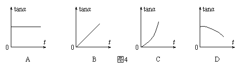 10.物体做平抛运动,其速度方向与水平方向的夹角α,则tanα随时间变化的图像是图4中的
