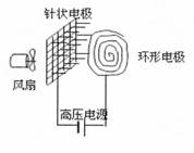 如图所示,在一排针状负极和环形正极之间加上5000V