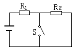 16. 如图所示的电路,电源内阻不能忽略,当电键S断开时,测得R1两端的电压为6V,