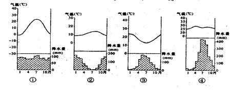 下图表示世界四个地点的气温降水状况。据此回答87-88题