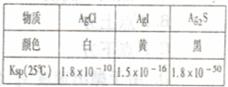 11.25℃,向AgCl 的白色悬浊液中,依次加入等浓度的KI溶液和Na2S溶液,先出现黄色沉淀,最终生成黑色沉淀。已知有关物质的颜色和溶度积如右表,下列叙述不正确的是