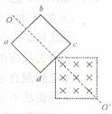 17.如图所示,一个边长为l的正方形虚线框内有垂直于纸面向里的匀强磁场,一个边长也为l的正方形导线框abcd所在平面与磁场方向垂直,虚线框对角线OO’与导线框的一条边dc垂直,OO’平分导线框。在t=0时,使导线框从图示位置开始以恒定速度沿OO’方向移动,直到整个导线框离开磁场区域。以i表示导线框中感应电流的强度,取沿a→d→c→b的方向为感应电流的正方向。在下列表示i=t关系的图示中,可能正确的是