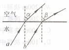 18.两束不同频率的单色光a、b以相同的入射角从水中射向空气,发生了如图所示的折射现象(α<β),下列结论中正确的是![]()