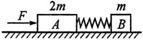 ,与地面间的摩擦不计。A、B间固定一轻弹簧,在水平推力F的作用下,A、B一起做匀加速直线运动,则( )