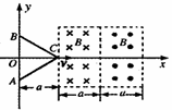 21.如图所示,两个垂直纸面的匀强磁场方向相反,磁感应强度的大小均为B,磁场区域的宽度均为a,一正三角形(高度为a)导线框ABC从图示位置沿图示方向匀速穿过两磁场区域,以逆时针方向为电流的正方向,在图乙中感应电流I与线框移动距离x的关系图象正确的是
