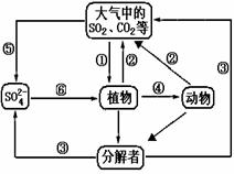 (4)在硫循环中,除图中所示过程外,大气中二氧化硫的来源还应有 | 。