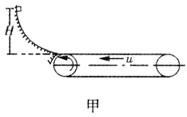 25.(22分)如图甲所示,质量M=20kg的物体从光滑曲面上高度H=0.8 m处无初速度释放,到达底端时水平进入水平传送带,传送带由一电动机驱动着匀速向左传动,速率为u=3 m/s,已知物体与传送带间的动摩擦因数