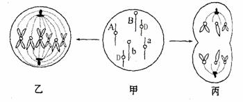 ⑵甲细胞形成乙细胞的分裂方式为 ,乙细胞中的四分体数目为 ,其最终产生的子细胞的基因型为 。