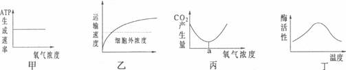③丙图表示酵母菌呼吸时氧气浓度与CO2产生量的关系,a点时产生ATP最多