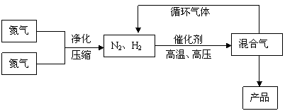 (1)合成氨反应的平衡常数很小,所以在工业上采取气体循环的流程。即反应后通过把混合气体的温度降低到 使混合气体分离出来产品;继续循环的气体是 。写出该反应的化学平衡常数表达式:K= 。