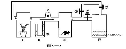 (1)图(一)中开关①打开,②③关闭,给装置Ⅰ充足的水分.矿质元素,同时给以光照一段时间,B.D两处的成分差别是B处 相对多,D处 相对多。