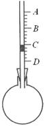 (2)温度计是生活.生产中常用的测温装置。右图为一个简单温度计,一根装有一小段有色水柱的细玻璃管穿过橡皮塞插入烧瓶内,封闭一定质量的气体。已知A.D间的测量范围为20℃-80℃,A.D间刻度均匀分布。当外界温度发生变化时,水柱位置将上下变化。该温度计封闭的气体状态变化过程和图中有色水柱下端所示的温度分别是 。(填代号)