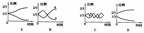 若从F2开始选择,经过若干代的人工选择后,下列较能正确表示T基因和t基因之间比例变化的图是______________。