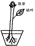 ②将3株全部去掉顶芽;