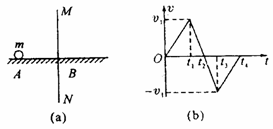 18.如图(a)所示,光滑水平面上质量为m的小球在直线MN的左方就会受到水平恒力F1作用(小球可视为质点),在MN的右方除受到F1作用外还受到与F1在同一直线上的恒力F2作用。现设小球由A点从静止开始运动,小球运动的v – t图象如图(b)所示,由图可知下列说法正确的是 ( )