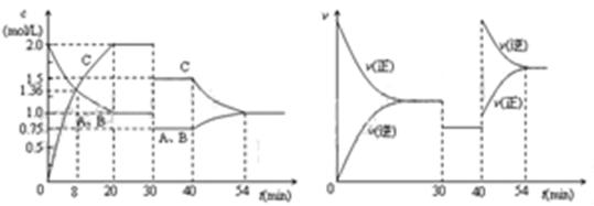 2C(g),达到平衡后,只改变反应的一个条件,测得容器中物质的浓度、反应速率随时间变化的如下图所示。下列说法中正确是