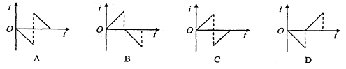 如图所示,一个直角三角形金属框,向左匀速穿过一个方向垂直于纸面向内的匀强磁场,磁场仅限于虚线边界所围成的区域内,该区域的形状与金属框完全相同,且金属框的下边与磁场区域的下边在一直线上.取顺时针方向为电流的正方向,金属框穿过磁场的过程中,感应电流i随时间t变化的图象是 ( )