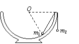 4、如图所示,一个半球形的碗放在桌面上,碗口水平,O点为其球心,碗的内表面及碗口是光滑的。一根细线跨在碗口上,线的两端分别系有质量为m1和m2的小球,当它们处于平衡状态时,质量为m1的小球与O点的连线与水平线的夹角为α=60°。两小球的质量比