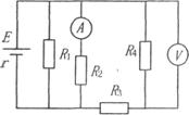 如图所示电路中,由于某一电阻断路,使伏特表和安培表的读数均变大,则断路的电阻可能是: