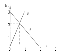 15、如图所示,直线A为电源的路端电压与总电流关系的伏安图线,直线Bl为电阻R两端电压与通过该电阻电流关系的伏安图线,用该电源和该电阻组成闭合电路时,电源的输出功率和效率分别是: