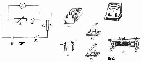 Ⅱ.(12分)图甲中E为电源,其电动势为e,R1为滑线变阻器,R2为电阻箱,A为电流表. 用此电路,经以下上步骤可近似测得A的内阻RA: