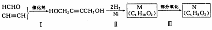 以 HCHO 和 C2H2为有机原料,经过下列反应可得化合物 N ( C4H8O2 )。![]()