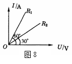 的电流I和电压U的关系如图8所示,可知两电阻大小的比值