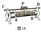 如图14所示滑动变阻器,将其接入电路,使滑片P向B端滑动时,使其