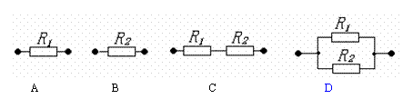 15.R1和R2是阻值大小不同的两个电阻,且R1<R2, 按图中四种方法连接,