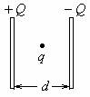 如图所示,平行板电容器的电容为C,带电荷量为Q,板间距离为d,今在两板的中点