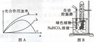 图B是用以验证温度对光合作用速率影响的重要实验装置,请回答: