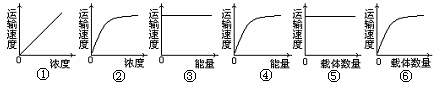 B.与葡萄糖进入红细胞相符的图有②、④、⑥
