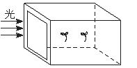 植物地上部分向光生长,根背光生长。取正在萌发的种子贴附在琼脂板上,再将琼脂板插入透明盒内培育,五面遮光,仅从一侧给予光照(见图)。幼苗根的生长方向将是