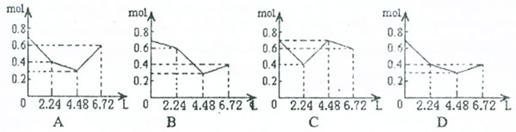 13.往含0.2mol NaOH和0.1mol Ba(OH)2的溶液中持续稳定地通入CO2气体,当通入气体的体积为6.72L(标况下)时立即停止,则在这一过程中,溶液中离子总的物质的量和通入CO2气体的体积关系正确的图象是(气体的溶解忽略不计)