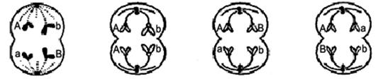 43.假设某哺乳动物的精原细胞中两对等位基因(Aa、Bb)分别位于两对同源染色体上,该细胞通过减数分裂产生精子时,在不发生基因突变的情况下,下图表示减数第二次分裂后期的是