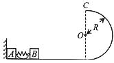 25.光滑水平面上放着质量,mA=1kg的物块A与质量mB=2kg的物块B, A与B均可视为质点,A靠在竖直墙壁上,A、B间夹一个被压缩的轻弹簧(弹簧与A、B均不拴接),用手挡住B 不动,此时弹簧弹性势能EP=49J。在A、B间系一轻质细绳,细绳长度大于弹簧的自然长度,如图所示。放手后B向右运动,绳在短暂时间内被拉断,之后B冲上与水平面相切的竖直半圆光滑轨道,其半径R=0.5m, B恰能到达最高点C。g=10m/s2,求