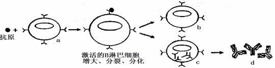 (2)若图中抗原再次进入人体内,不能被细胞a、b、c中 细胞特异性识别。