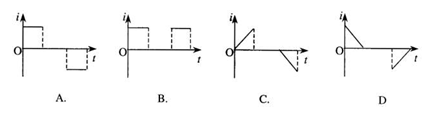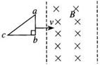 如图所示,两平行的虚线间的区域内存在着有界匀强磁场,有一较小的三角形线框abc的ab边与磁场办界平行,现使此线框向右匀速穿过磁场区域,运动过程中始终保持速度方向与ab边垂直。则下列各图中哪一个可以定性地表示线框在进入磁场的过程中感应电流随时间变化的规律 ( )