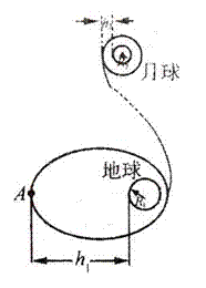 23.(14分)“嫦娥奔月”的过程可以简化为(右图),“嫦娥一号”升空后,绕地球沿椭圆轨道运动,远地点A距地面高为h1,在远地点时的速度为v,然后经过变轨被月球捕获,再经多次变轨,最终在距离月球表面高为h2的轨道上绕月球做匀速圆周运动。
