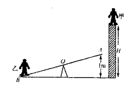 24.(20分)杂技演员甲的质量为M=80kg,乙的质量为m=60kg。跳板轴间光滑,质量不计。甲、乙一起表演节目。如下图所示,开始时,乙站在B端,A端离地面1m,且OA=OB。甲先从离地面H=6m的高处自由跳下落在A端。当A端落地时,乙在B端恰好被弹起。假设甲碰到A端时,由于甲的技艺高超,没有能量损失。分析过程假定甲、乙可看做质点。